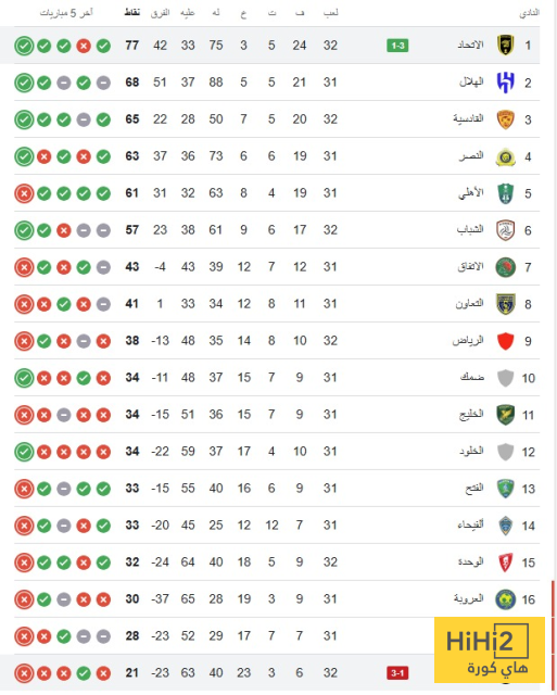 إليكم ترتيب الدوري السعودي عقب تتويج الاتحاد باللقب: