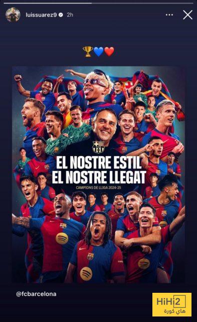 هاي كورة – قدم لويس سواريز التهنئة لبرشلونة على الفوز بلقب الليغا، الذي حسمه الفريق الكتالوني بعد انتصاره أمام إسبانيول بثنائية دون رد.