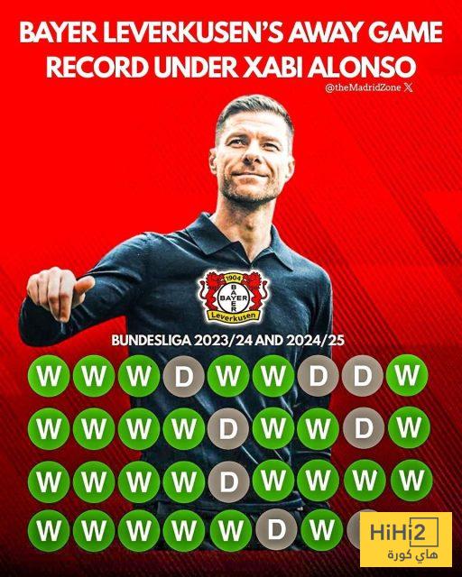 أنهى ألونسو مسيرته مع ليفركوزن بطريقة تاريخية، حيث لم يتعرض الفريق لأي خسارة خارج أرضه في الدوري الألماني خلال موسمين متتاليين، في إنجاز غير مسبوق يُسجل باسمه في “البوندسليغا”.