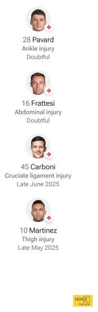 وسيكون سيموني إنزاغي في مأزق حينما يخوض اللقاء بدون عدد من نجومه المصابين والذين أبرزهم، دافيد فيراتيسي، وبنجامين بافارد، ولاروتارو مارتينيز.