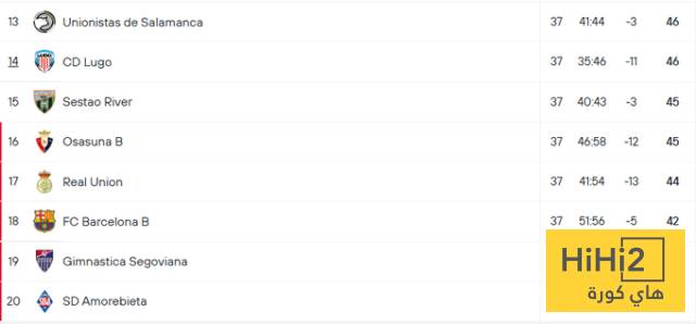 هاي كورة- يحتل رديف برشلونة الآن المركز الـ 18 من ترتيب دوري الدرجة الثالثة الاسباني برصيد 42 نقطة ، وحاليا الفريق مهدد بالهبوط .