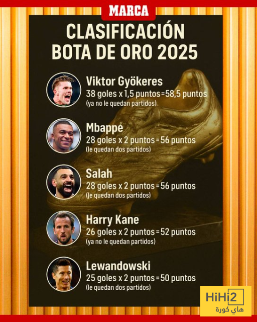 اللاعبان يتساويان في عدد النقاط (56 نقطة) وأمامهم مباراتين لتسجيل هدفين او اكثر للاطاحة بـ غيركيرس من القمة واعتلاء احدهما للصدارة وخطف اللقب.