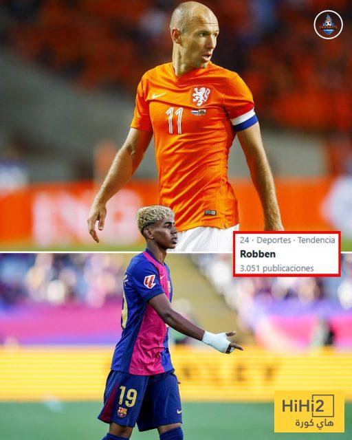 هدف لامين جعل الجماهير تتحدث على منصة إكس عن وجه التشابه بينه وبين روبين في تسجيل الأهداف لذلك تصدر الهولندي خانة الترند في العالم حاليا.