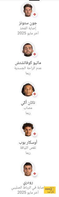 فيما يلي قائمة غيابات السيتي قبل اللقاء: