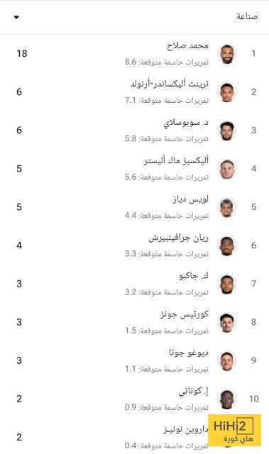 هاي كورة – يتصدر النجم المصري محمد صلاح، قائمة أكثر لاعبي ليفربول صناعة للأهداف في الدوري الإنجليزي الممتاز هذا الموسم، حيث قدم 18 تمريرة حاسمة حتى الآن.