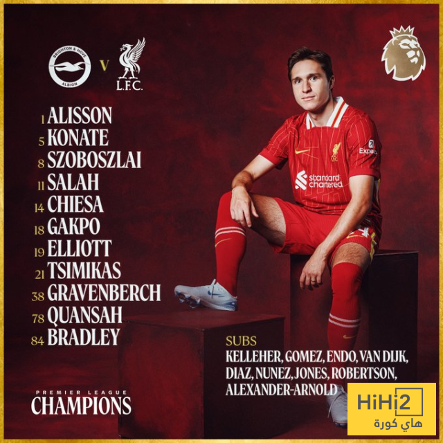 هاي كورة- أعلن ارني سلوت مدرب ليفربول عن تشكيلة فريقه الرسمية للقاء برايتون مساء اليوم الاثنين، ضمن منافسات الجولة الـ 37 في الدوري الانجليزي الممتاز.