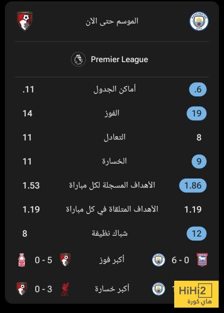 نتائج مانشستر سيتي و بورنموث هذا الموسم