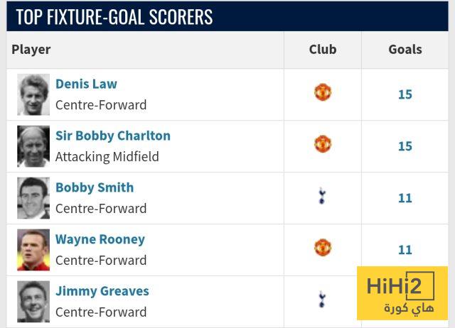 وبحسب ما جاء في تقرير موقع ترانسفير ماركت، فقد تصدرا أسطورتا اليونايتد دينيس لو والسير بوبي تشارلتون الترتيب بـ15 هدف، ثم جاء بوبي سميث لاعب توتنهام ثانيًا بـ11 هدف مع آخرين.