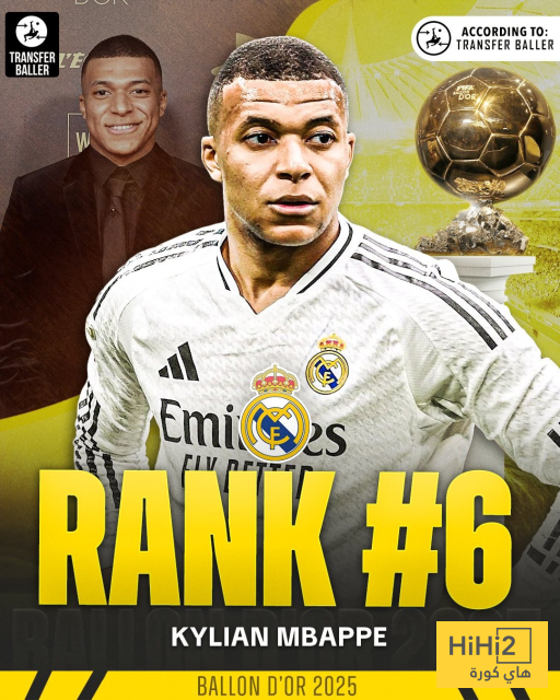 6- الفرنسي كيليان مبابي لاعب نادي ريال مدريد .