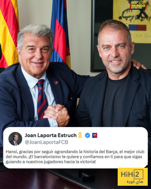 رئيس برشلونة خوان لابورتا وجه رسالة للمدرب الالماني عقب التجديد عبر حسابه الرسمي على إكس قائلا: