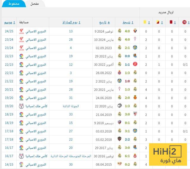فيما يلي أرقام ريال مدريد مع هذا الحكم: