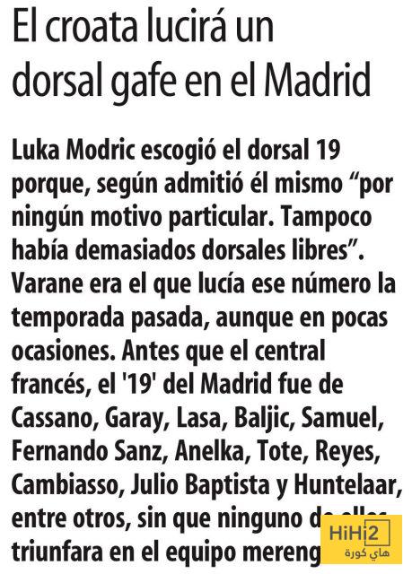 أما صحيفة موندو ديبورتيفو، فركزت على اختيار مودريتش للقميص رقم 19، ووصفت الرقم بأنه “منحوس”، نظراً لفشل العديد من اللاعبين السابقين في التألق به.