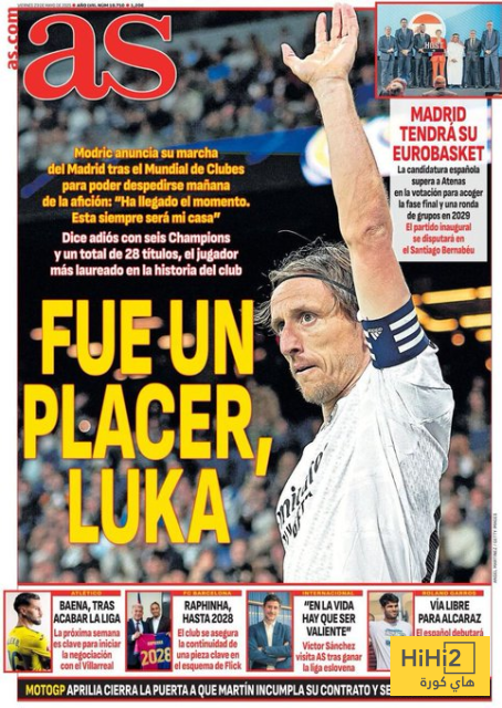 هاي كورة- ودعت صحيفة أس الاسبانية النجم الكرواتي لوكا مودريتش الذي أعلن عن رحيله رسميا عن ريال مدريد بعد انتهاء بطولة كأس العالم للاندية في منتصف شهر يوليو المقبل.