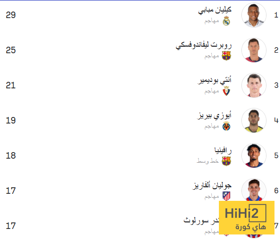 ويأتي في قائمة الملاحقين بوديمير برصيد 21 هدفًا، ثم أيوزي بيريز بـ19، يليه رافينيا بـ18، بينما يتقاسم كل من سورلوث وجوليان ألفاريز المركز التالي بـ17 هدفًا لكل منهما.