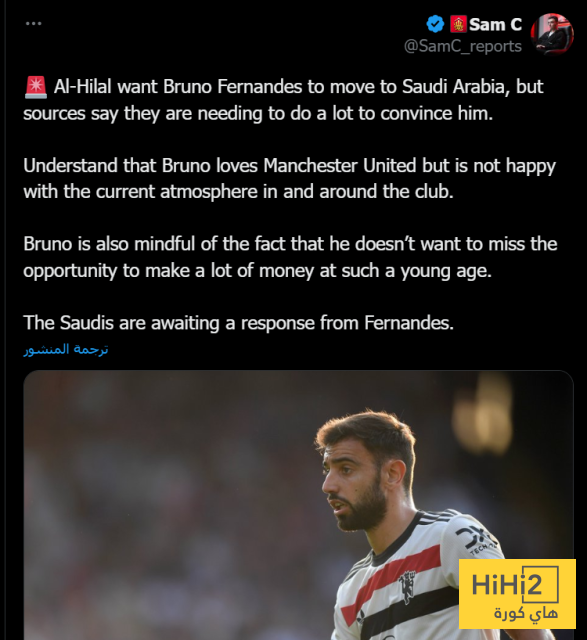 في الوقت الحالي، ينتظر الهلال رد برونو فيرنانديز، حيث يأمل النادي في أن يتمكن من إقناع اللاعب بالانتقال إلى الدوري السعودي.