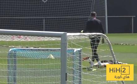 هاي كورة – مازح تشيزني حارس مرمى نادي برشلونة مواطنه روبرت ليفاندوفسكي في تدريبات الفريق الأول اليوم بالضربة القاضية على طريقة نجوم الملاكمة.