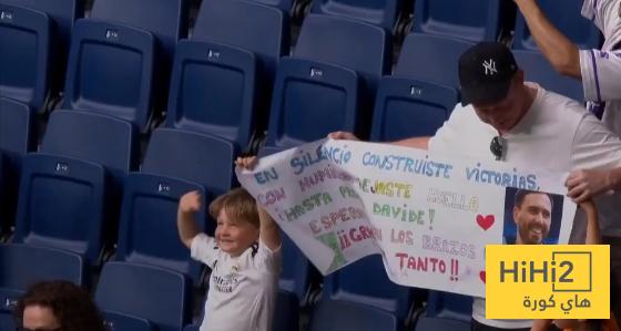 جمهور ريال مدريد كرم دافيد أنشيلوتي برفع لافتات اه في مدرجات السانتياجو برنابيو بعد دوره في الجهاز الفني خلال السنوات الماضية.