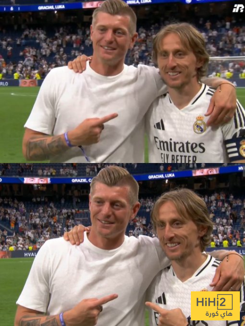 كروس استقبل مودريتش لحظة استبداله ضد سوسيداد بالاحضان وهنأه على مسيرته الرائعة وسط تصفيق جماهير البرنابيو.