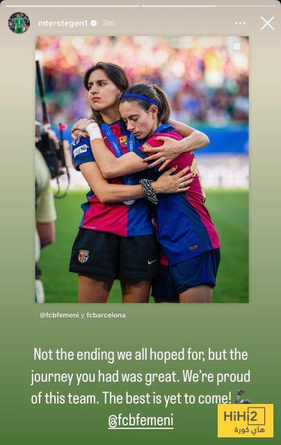 وكتب شتيغن: “ليست هذه النهاية التي كنا نأملها جميعًا، لكن الرحلة التي قطعتموها كانت رائعةـ نحن فخورون بهذا الفريق، الأفضل لم يأتِ بعد!”