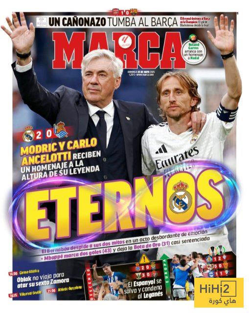 هاي كورة _ قامت صحيفة ماركا المدريدية بتسليط الضوء في عددها الصادر اليوم على وداعية كارلو أنشيلوتي ولوكا مودريتش.