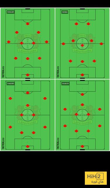تشابي الونسو مع باير ليفركوزن استخدم عدة تشكيلات و تكتيك مختلف مثل 3-5-2 و 4-2-3-1 كنا هو موضح بالصورة: