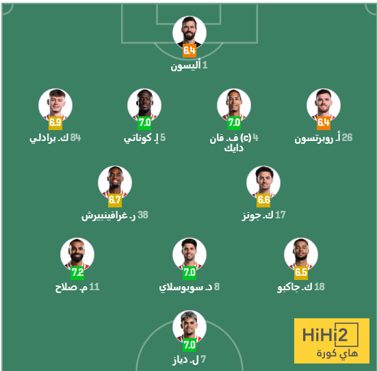 إليكم تقييم لاعبي ليفربول في الشوط الأول: