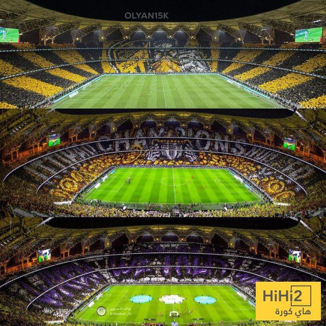وعندما اصطف اللاعبون لترديد نشيد النادي، رفع الجمهور تيفو آخر يحمل عبارة “Ittihad champions number 1″، تأكيدًا على مكانة الفريق كأبطال.