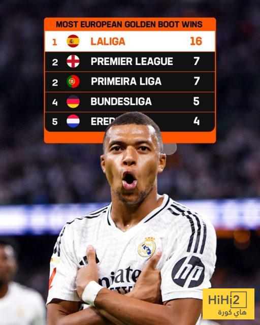 وبحسب موقع لايف سكور، جاء تتويج مهاجم ريال مدريد ليعزز من تواجد لاعبي الدوري الإسباني في صدارة قائمة الأكثر حصولًا على الحذاء الذهبي بـ16 مرة.