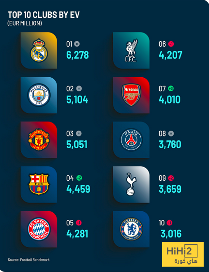 هاي كورة – نشرت مؤسسة بنش مارك المختصة في اقتصاد كرة القدم تقريرها السنوي بشأن القيمة التسويقية لتشكيلات الأندية في العالم لعام 2025.