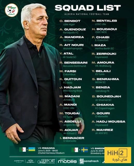 هاي كورة – أعلن الاتحاد الجزائري لكرة القدم رسميًا عن قائمة المنتخب الأول التي ستخوض مباراتين وديتين ضد منتخبي رواندا والسويد.