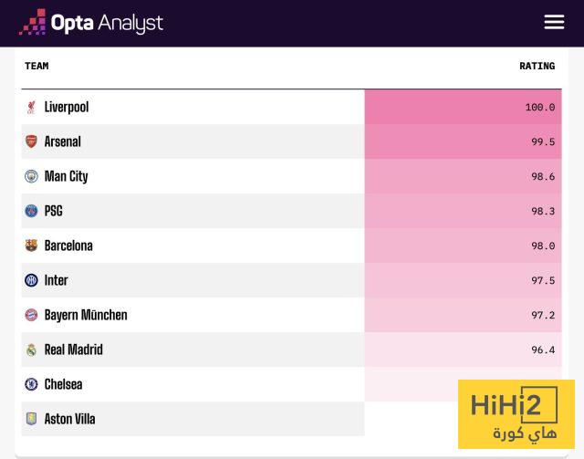 جاء ترتيب Opta على النحو التالي: