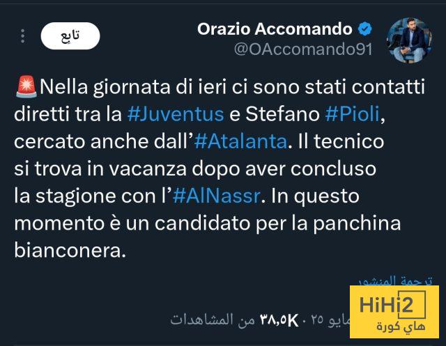 هاي كورة – أفاد الصحفي الرياضي أوراتسيو أكوماندو، بأن نادي يوفنتوس أجرى اتصالات مباشرة مع المدير الفني الحالي لفريق النصر، ستيفانو بيولي، الذي يحظى أيضًا باهتمام من أتالانتا.