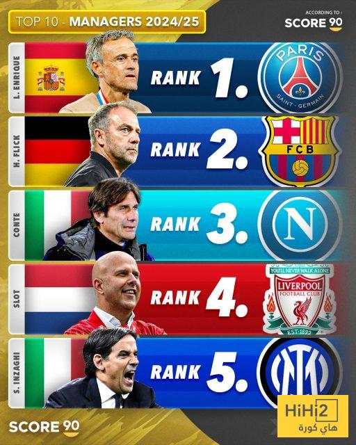 وإليكم القائمة الكاملة لأفضل 5 مدربين هذا الموسم وفقًا لتصنيف Score 90: