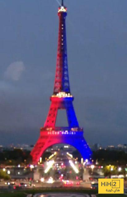 برج ايفيل في العاصمة الفرنسية يتزين حاليا بشعار باريس تكريما للنادي الذي حقق اللقب لأول مرة.