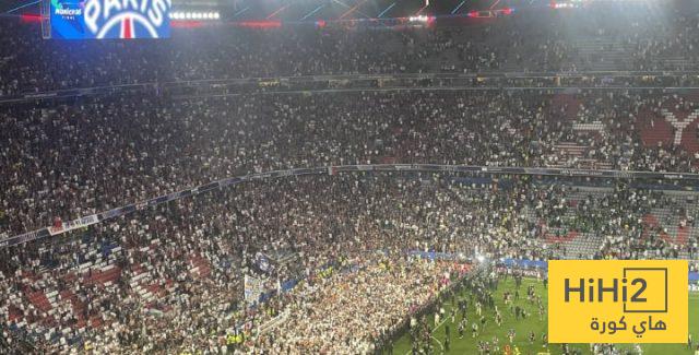 جمهور باريس سان جيرمان الفرنسي اقتحم ملعب بايرن ميونخ لمشاركة فريقهم الاحتفالات وسط تأمين شديد من رجال الشرطة.