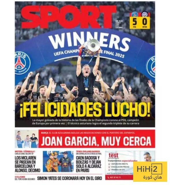 هاي كورة _ قامت صحيفة سبورت الكتالونية بتسليط الضوء في عددها الصادر اليوم على تتويج باريس سان جيرمان بلقب دوري أبطال أوروبا.
