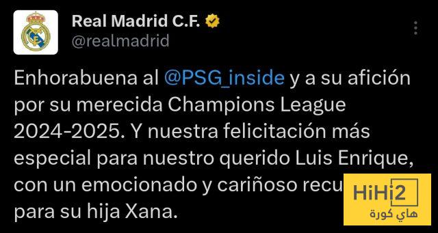 ” تهانينا لـ باريس سان جيرمان وجماهيرهم على فوزهم المستحق بدوري أبطال أوروبا 2024-2025. وتهانينا الخاصة لعزيزنا لويس إنريكي، مع ذكرى صادقة ومحبة لابنته.”