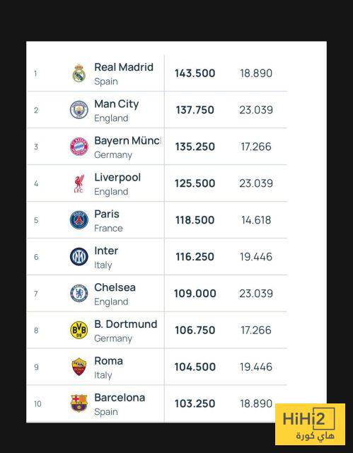 هاي كورة- أصدر الاتحاد الأوروبي لكرة القدم (اليويفا) التصنيف الرسمي الجديد للأندية، والذي يعتمد على الأداء في المسابقات الأوروبية خلال السنوات الخمس الأخيرة.