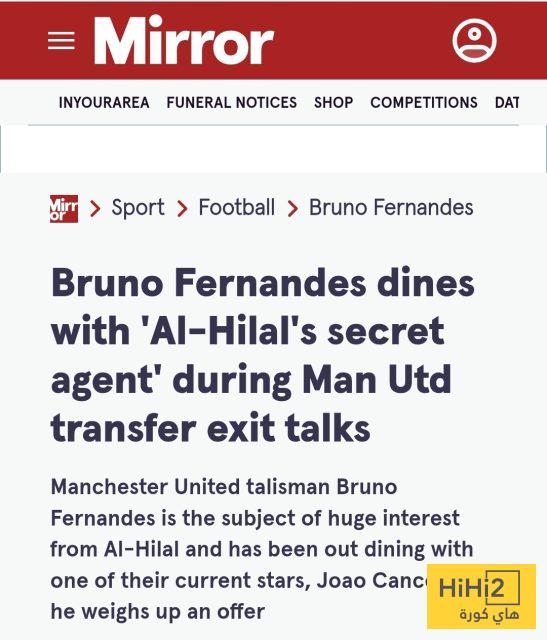 هاي كورة – أفادت تقارير صحفية بريطانية عن وجود احتمالية لوجود “عميل سري” من نادي الهلال في مفاوضات انتقال النجم البرتغالي برونو فيرنانديز، لاعب مانشستر يونايتد.