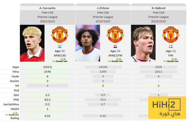 الإحصائيات توكد بأن جارناتشو شارك في 36 مباراة بالبريميرليغ منها 23 مباراة أساسيًا، سجل فيها 6 أهداف وقدم تمريرتين حاسمتين، بينما شارك هويلوند في 32 مباراة، سجل خلالها 4 أهداف، وظهر زيركزي في 32 مباراة، سجل فيها 4 أهداف وصنع هدف وحيد.