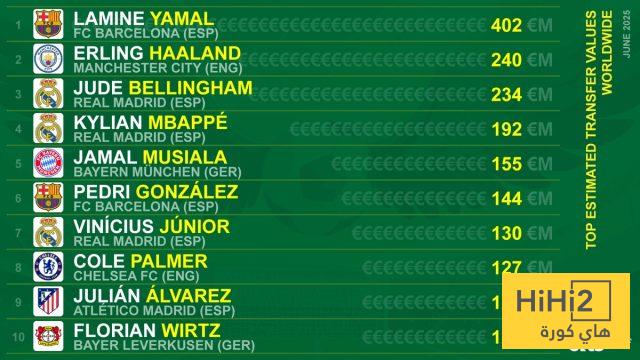 1- الاسباني لامين يامال من نادي برشلونة : 402 مليون يورو .