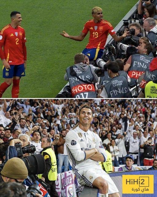 يامال بعد هزه الشباك الفرنسية اقترب من المدرجات و جلس امام عشرات المصورين لأخذ صوره و هو يحتفل بنفس الطريقة التي سبق لرونالدو ان احتفل بها عندما كان في ريال مدريد .