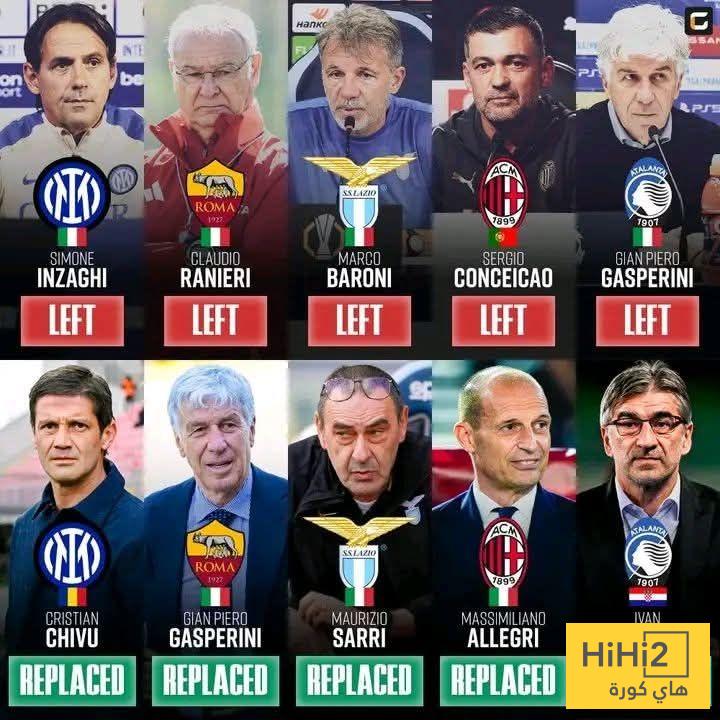 وحده نابولي بطل الدوري خرج عن النص عكس عام 2023 حيث احتفظ بمدربه انطونيو كونتي ليقوده خلال حملة الدفاع عن تاجه .