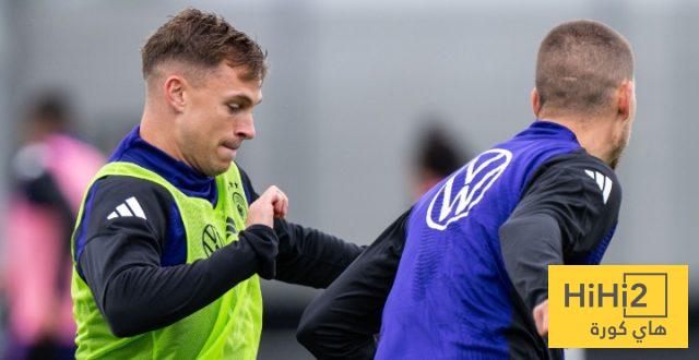 منتخب ألمانيا يختتم استعداداته الآن للقاء فرنسا في دوري الأمم الأوروبية حيث يؤدي عمليات الإحماء الأخيرة.