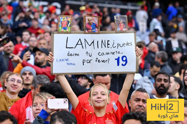 أحد مشجعات المنتخب الاسباني رفعت لافتة تطلب من لامين يامال نجم لاروخا الحصول على قميصه .