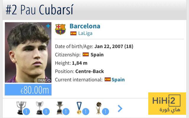 هاي كورة – وفقًا لآخر تحديث من موقع “ترانسفير ماركت”، ارتفعت قيمة الإسباني باو كوبارسي، لاعب برشلونة الشاب، إلى 80 مليون يورو، ليصبح أغلى مدافع في العالم.