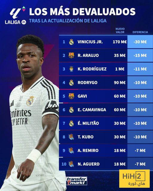 هاي كورة- شهدت آخر تحديثات موقع “ترانسفير ماركت” انخفاضًا كبيرًا في القيمة السوقية لعدد من أبرز لاعبي الدوري الإسباني، حيث تصدر فينيسيوس جونيور القائمة بتراجع بلغ 30 مليون يورو، لتصبح قيمته الجديدة 170 مليون يورو.