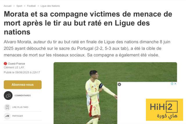 هاي كورة- تلقى المهاجم الاسباني الفارو موراتا لاعب نادي غلطة سراي التركي تهديدات بالقتل بسبب اهداره ركلته الترجيحية ضد البرتغال في نهائي دوري الامم الاوروبية الاحد المنصرم .