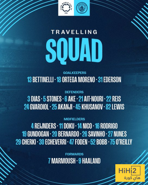 هاي كورة- أعلن بيب غوارديولا مدرب مانشستر سيتي قائمة فريقه المستدعاة لبطولة كأس العام للاندية المقرر انطلاقها بعد ايام قليلة في الولايات المتحدة الامريكية.