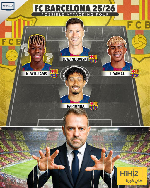 خط هجوم برشلونة الموسم القادم في حال تعاقده مع ويليامز سيكون رباعي الابعاد يضم كل من لامين يامال و ويليامز كجناحين و قبلهما روبيرت ليفاندوفسكي القناص كراس حربة و خلفهما رافينيا كمتوسط ميدان هجومي .